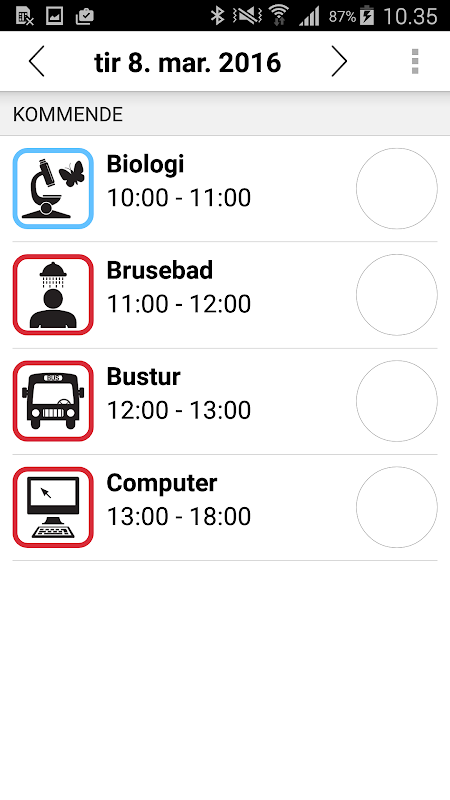 I DayTimer Family indstilles aktiviteterne og visningen til hvert familiemedlem, fx ikonstørrelser, aktivitetsure, færdig-knapper og mængden af information.
