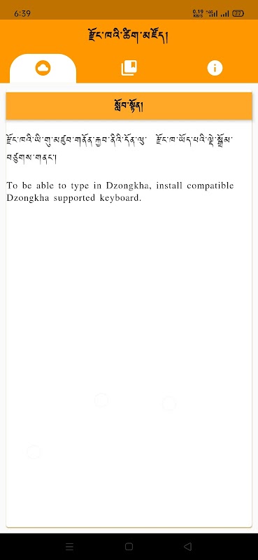 Cette application de dictionnaire 3 en 1 est développée pour donner un accès facile aux dictionnaires de Dzongkha de la Dzongkha Development Commission et encourage les Bhoutanais à utiliser le Dzongkha comme principal moyen de communication dans leur vie quotidienne.