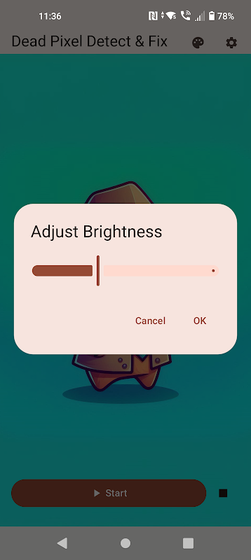 Comment réparer les pixels morts ou bloqués ? Appuyez sur l'icône des paramètres en haut à droite pour régler la luminosité, le délai d'expiration et l'intervalle.