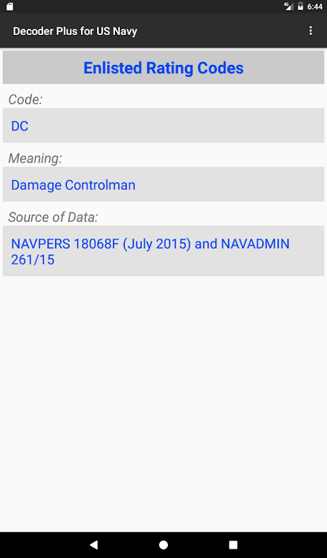 Cette application est un guide de référence rapide pour de nombreux membres du personnel de la marine américaine et d'autres codes. Au lieu de passer du temps à trouver la bonne référence et à rechercher les informations, cette application permettra d'accéder rapidement à la réponse.