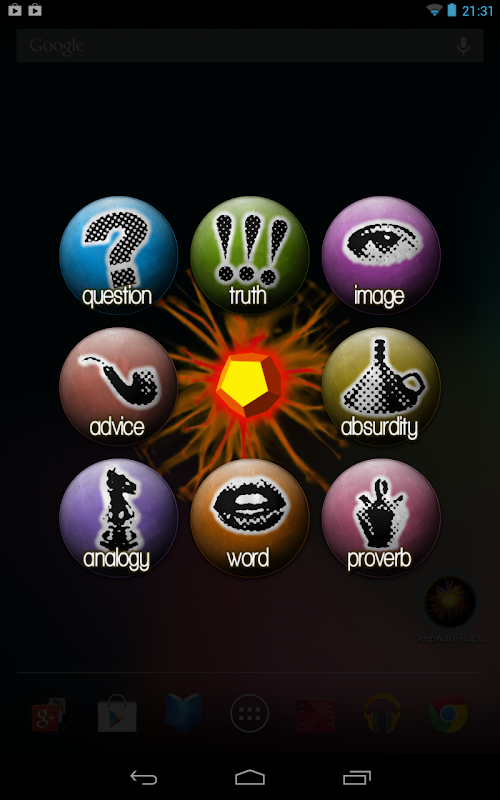 ► Usage is very easy: Simply open the app and choose amongst eight categories of answers: absurdity, advice, analogy, image, proverb, question, truth and word.