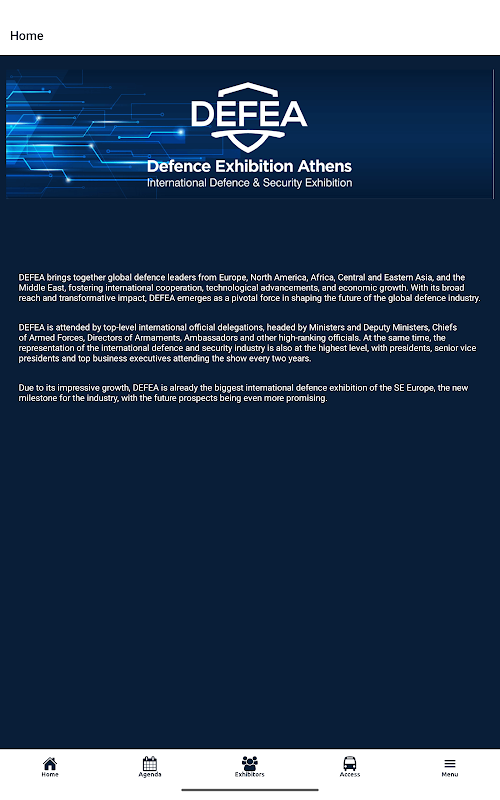 DEFEA App est l'application mobile officielle de DEFEA – Defence Exhibition Athens, le principal événement international de défense et de sécurité en Grèce. Restez informé des dernières informations sur l'événement, accédez à la liste des exposants et organisez efficacement votre visite. Connectez-vous avec des professionnels de l'industrie, explorez les sessions clés et améliorez votre expérience chez DEFEA.