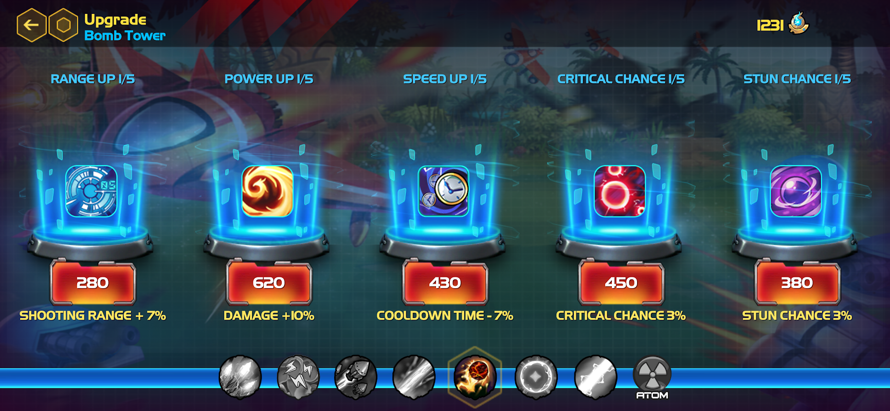 -💣 Tour de bombes : Explosions de zone qui punissent les ennemis sur les longs trajets. -☀️ Tour Rayon : Attaques énergétiques avancées à large couverture et dégâts continus.