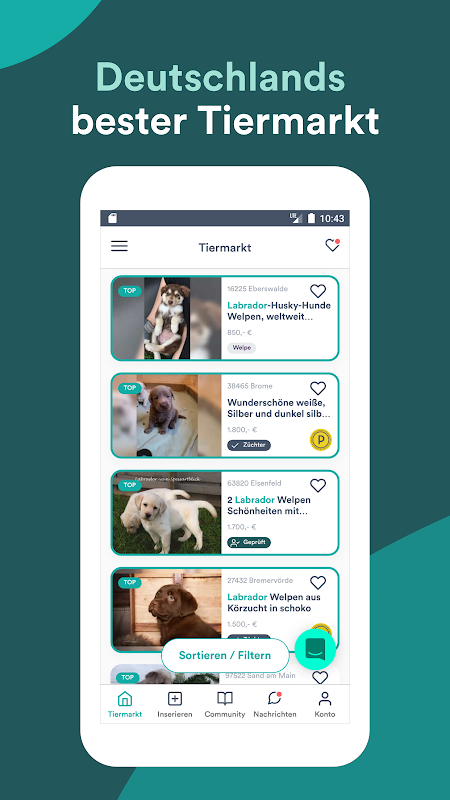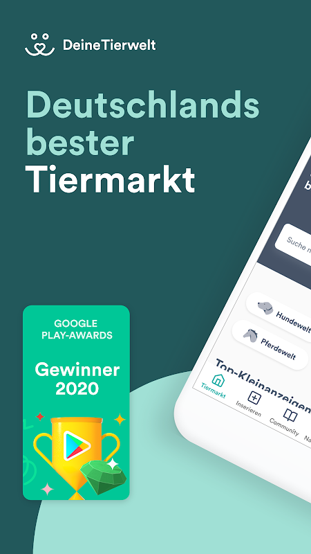 Les animaux représentent-ils le monde pour vous? États-Unis aussi! DeineTierwelt représente le véritable amour des animaux depuis 2007 et apporte chaque année 200 000 animaux provenant de fournisseurs réputés et d'organisations de protection des animaux. Cela fait de votre monde animal le numéro 1 pour la médiation animale sérieuse en Allemagne. Vous pouvez trouver votre nouveau favori parmi plus de 150 000 publicités actives - très facilement et commodément avec notre application, qui vient de recevoir le «Google App Award 2020».