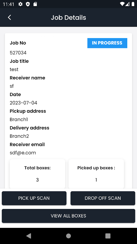 - Le tableau de bord du conducteur contiendra également le nombre total de boîtes qui doivent être livrées, y compris les informations sur la boîte.