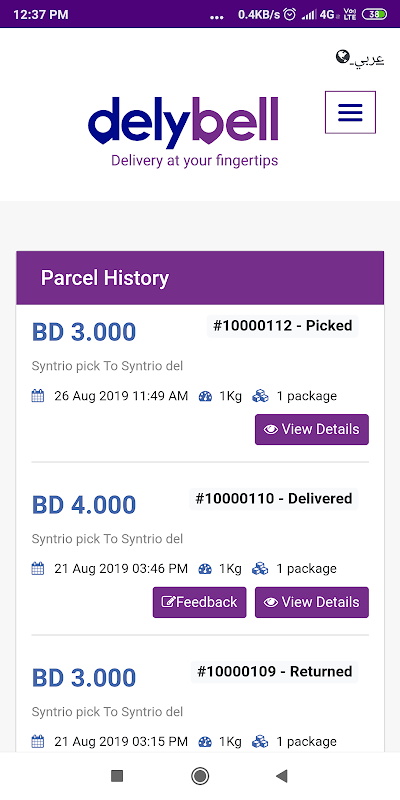 DELYBELL is the most advanced, quick and reliable courier delivery app designed according to the needs of customers. We are glad to say that we are becoming big with each passing day in terms of customer satisfaction. Our hands are spread across the globe and we can deliver your needs with most care in quick time. We provide extensive services with efficient team who are always customer cooperative.
