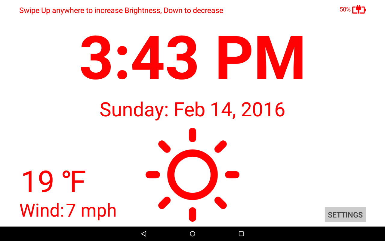 La version 1.5 était une mise à jour majeure. Les utilisateurs peuvent désormais changer le fond d'une image, la sélection d'une image locale de l'appareil, ou une image Internet URL (par exemple webcam Je tiens: http://107.170.253.177/akumal/netcam-0.jpg). conditions météorologiques actuelles sont maintenant affichés ainsi (nécessite les services de localisation est activé). En outre, a ajouté la fonctionnalité d'alarme (en utilisant le fournisseur d'alarme Android par défaut).