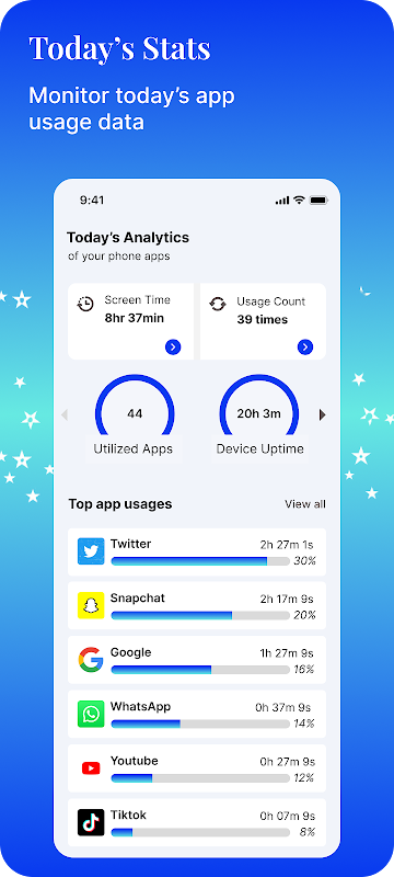 Prenez le contrôle de l'utilisation de votre appareil et obtenez des informations précieuses sur vos habitudes numériques avec Device Analytics. Notre puissant outil de création de rapports offre une gamme complète de mesures pour vous aider à comprendre et à optimiser votre expérience sur smartphone.