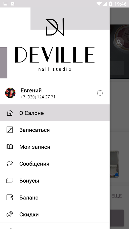 Application mobile du studio de manucure Deville.