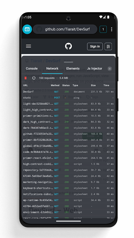 DevSurf est un navigateur web mobile (basé sur WebView standard) conçu pour les développeurs et les utilisateurs avancés. Grâce à ses outils de développement intégrés et à ses fonctionnalités de navigation flexibles, vous pouvez inspecter, déboguer et tester des sites web directement sur votre appareil, sans quitter votre navigateur.