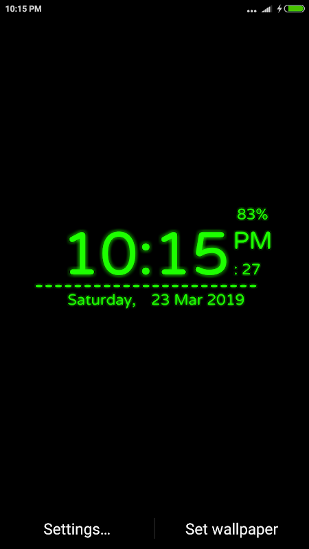 Digi Clock Live Wp Affichez l'heure de votre appareil sur l'écran de votre téléphone mobile en utilisant une sélection et un style de police différents et vous pouvez également modifier l'horloge avec une lueur de couleur et un effet néon.