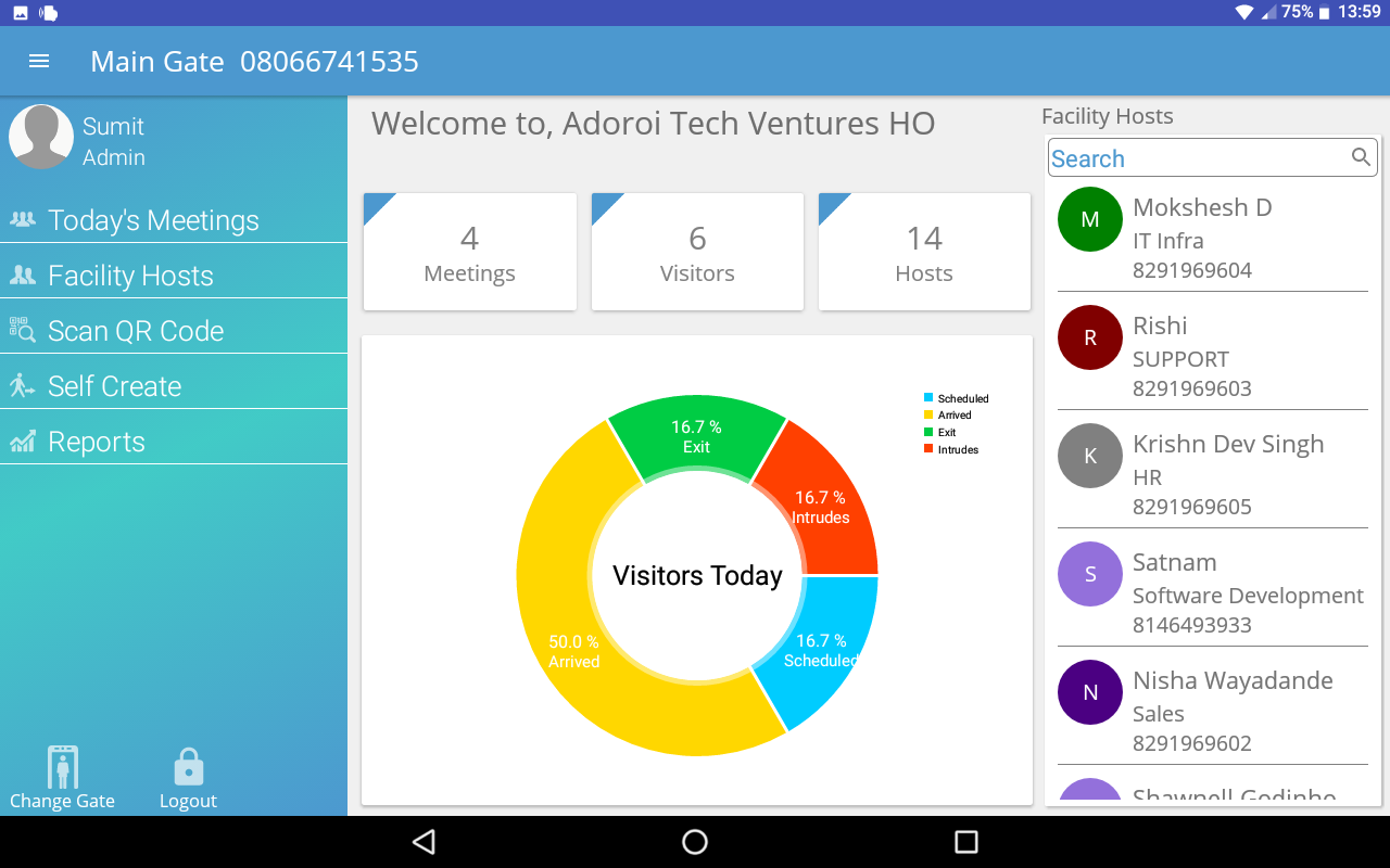 - The visitor can create a meeting by himself through a tab-based kiosk installed at the gate.