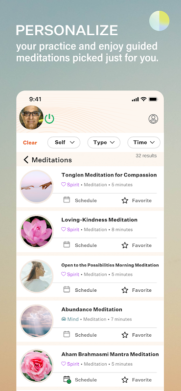 • Accès: programmes personnalisés qui s'appuient sur plus de 50 méditations et pratiques différentes développées par Deepak.