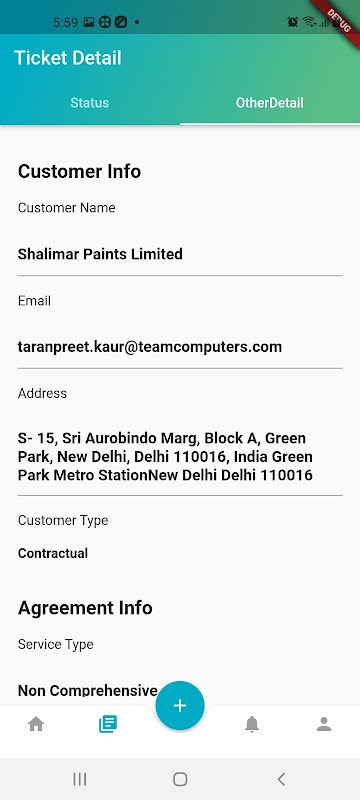 Une fois connecté à l'application, vous verrez un tableau de bord personnalisé sur votre écran. Le tableau de bord vous mettra à jour avec le statut de toutes vos demandes de service - si elles sont en attente, en cours, non affectées ou affectées à un ingénieur.