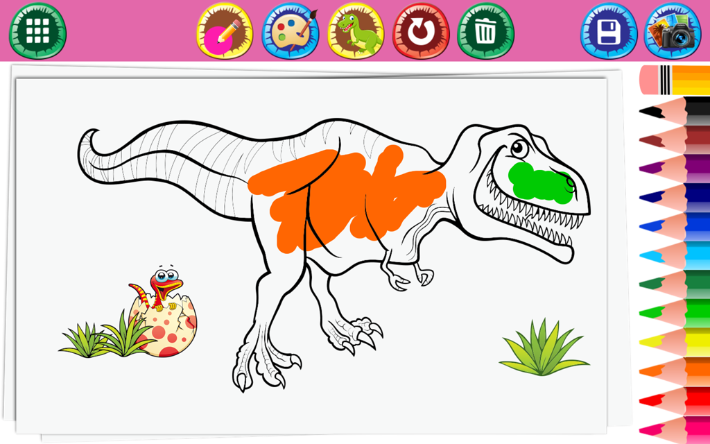 Full features set of coloring app, dinosaur game coloring book for kids.