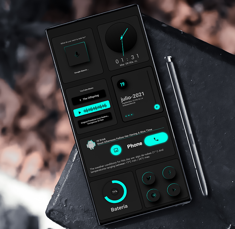 Pro clave https://play.google.com/store/apps/details?id=org.kustom.widget.pro