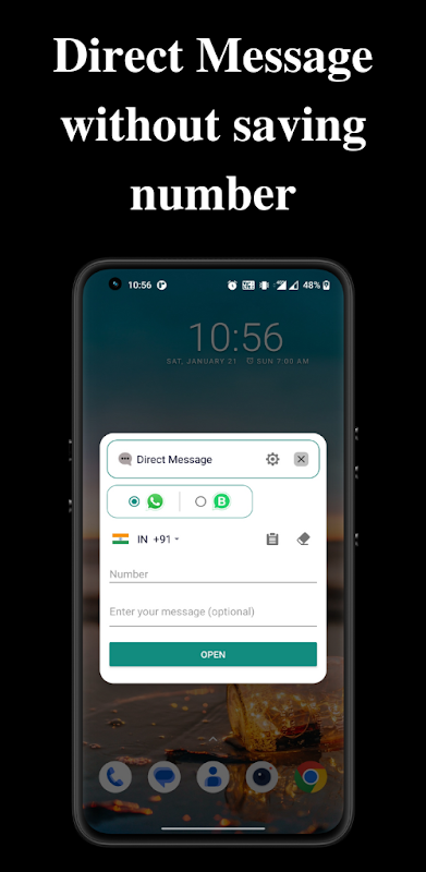 Cela aide tous ceux qui nécessitent une utilisation fréquente de WhatsApp avec des utilisateurs inconnus et des numéros non enregistrés. Il ouvrira rapidement un WhatsApp ou WhatsApp Business pour envoyer un message sans perdre de temps à enregistrer des numéros inutiles.