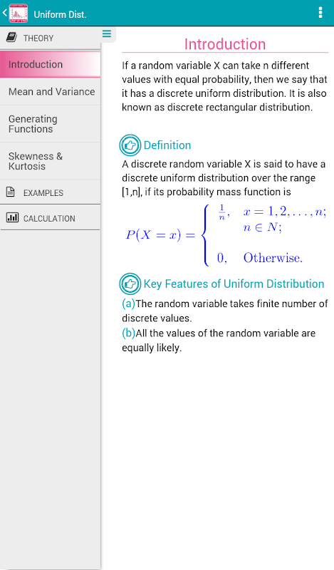 Discrete Probability Distribution App is a unique and interactive statistical tool to learn theory and concepts of Discrete Probability Distributions.