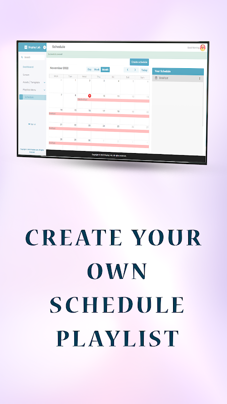 3. Créer et afficher : téléchargez vos médias, puis créez une liste de lecture ou une diffusion pour présenter votre contenu exactement comme vous le souhaitez.