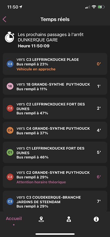 Cette application est multimodale et intègre également les données horaires temps réel des trains SNCF au départ de Dunkerque et les informations du réseau urbain de Calais.