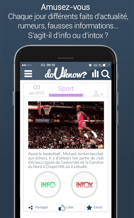 Ajout au favoris : vous pourrez mettre de côté vos infos/intox préférées pour les retrouver facilement