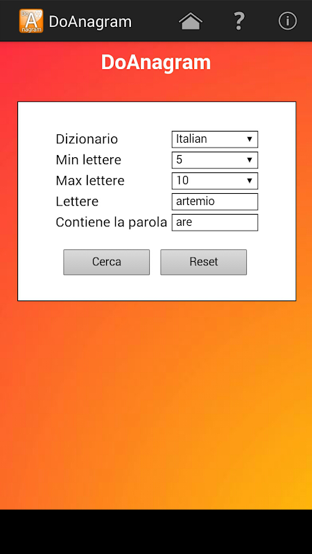 En réglant quelques paramètres que vous pouvez recevoir tous les anagrammes possibles du dictionnaire choisi.