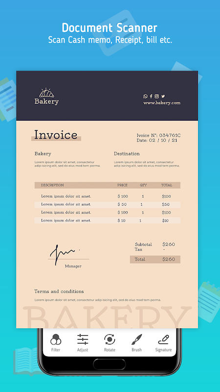 A free doc scanner can allows to add any type of digital signature. You can add any signature in print documents or written documents in different sizes. Digitally sign on signature pad and add to documents. You can customize the size and just drag to add sign on the documents.