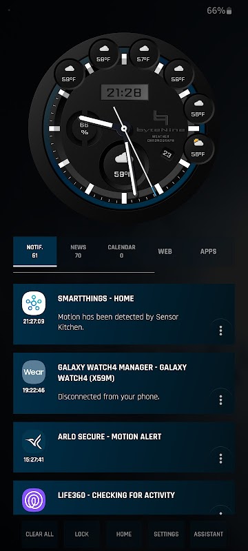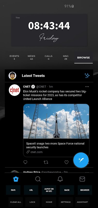 Faites glisser votre doigt vers le haut ou vers le bas sur l'horloge pour afficher une horloge en plein écran ou une notification / navigateur en plein écran.