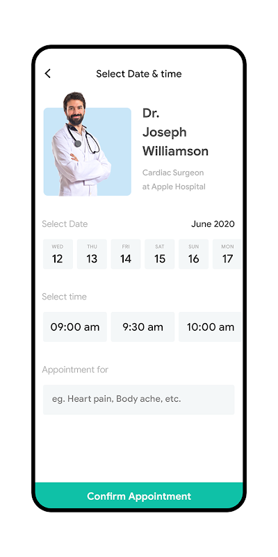 Ce modèle d'application UI / UX présente toutes les pages et composants nécessaires pour la recherche de médecins et la réservation et la gestion des rendez-vous.