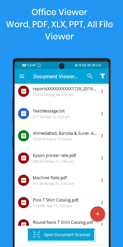 Visionneuse de documents et scanner de documents pour DOC, DOCX, XLS, XLS, PPT, PPTX, TXT et PDF