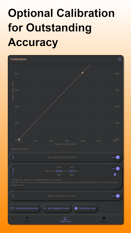 L'application utilise les capacités avancées du capteur de l'appareil photo de votre smartphone, combinées à des algorithmes sophistiqués, pour analyser le plus précisément possible la lumière entrante et déterminer sa longueur d'onde dominante. Cette technologie ouvre un monde de possibilités, vous permettant de plonger dans les détails complexes du spectre lumineux de notre environnement.