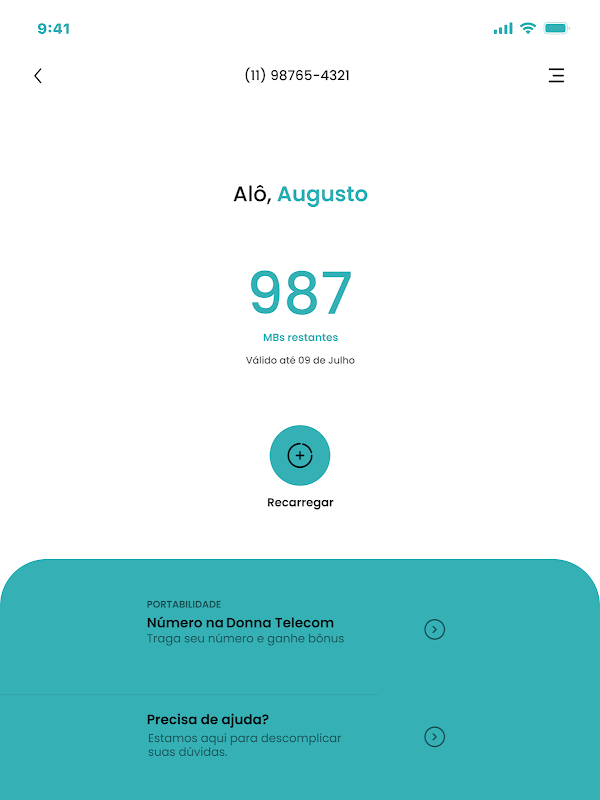 L'application Donna Conecta a été conçue pour vous qui recherchez la praticité, le contrôle et la liberté dans votre expérience mobile. Avec lui, vous disposez d'une totale autonomie pour gérer votre forfait, suivre votre consommation et recharger simplement et rapidement.
