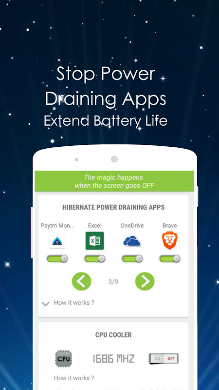 Économiseur de batterie et refroidisseur de processeur puissants: l'application Doze refroidit le processeur, libère de la mémoire en fermant les applications et les processus d'arrière-plan. Ce qui donne une nouvelle vie au CPU, ce qui résout le problème de chauffage de votre appareil et accélère la vitesse de votre appareil