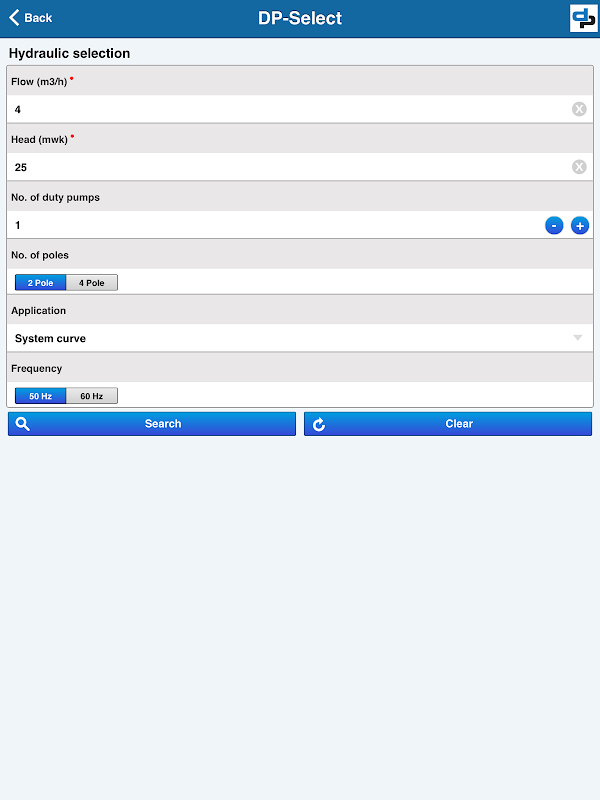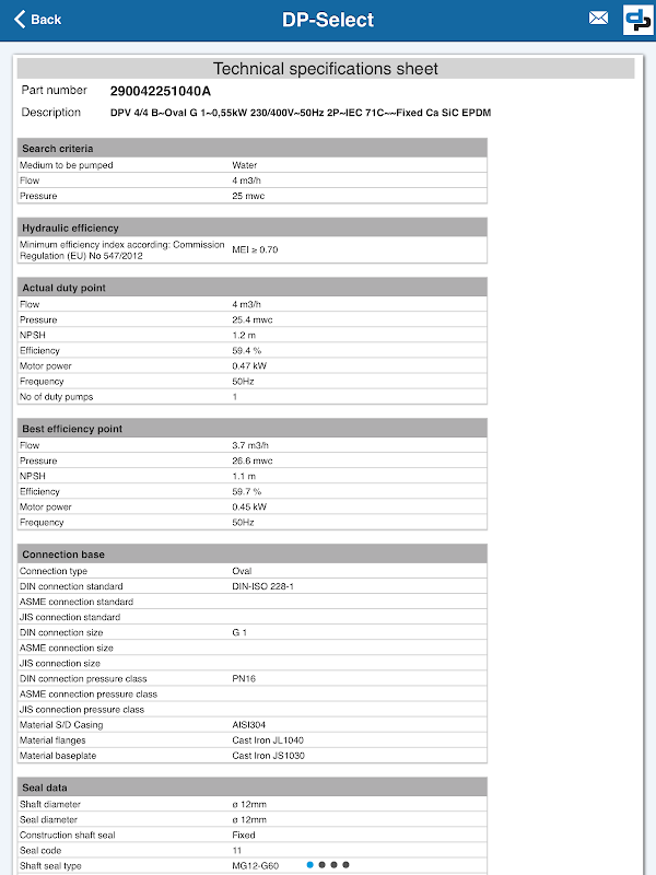 DP Select est l'outil officiel de la sélection de produits de pompes DP. Cet outil de sélection vous aide avec une configuration intuitive de produit pour votre application. Informations détaillées du produit est fourni en résultat de votre sélection.