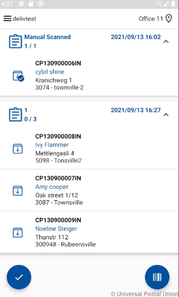 Cette application permet aux agents de livraison de se connecter, de sélectionner l'établissement où ils travaillent actuellement et de récupérer leur liste de notification de distribution attribuée. Ensuite, ils peuvent démarrer la tâche de livraison du courrier, avec ou sans connexion Internet, enregistrer la livraison et les tentatives infructueuses de livraison, ainsi que gérer les totaux de leurs équipes.