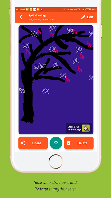 This app allows you to draw things on your phones and tablets with your hands. Experiment and explore using various color combinations on various colored backgrounds. Even, you can draw on the custom selected pictures of your friends and family from your gallery.