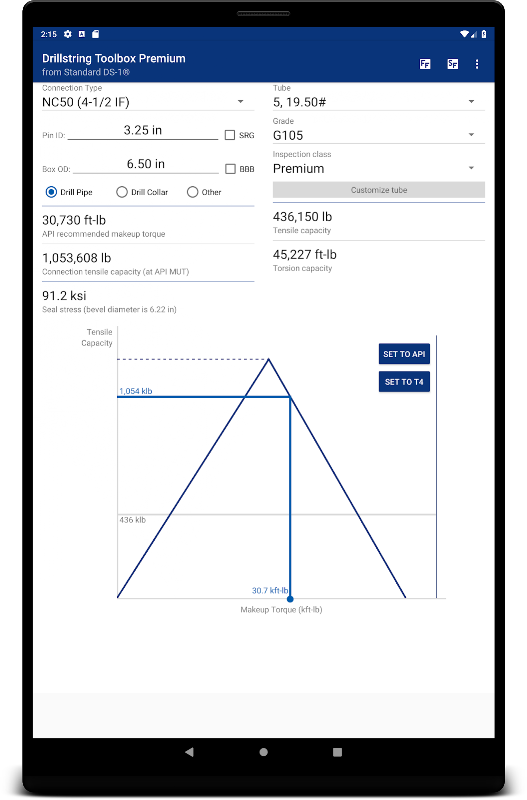 Les mêmes ingénieurs adorables derrière la norme DS-1 ont créé cette Drillstring Toolbox Premium! C'est une calculatrice avancée qui fait tout ce que fait gratuitement Drillstring Toolbox et plus encore! Avec cela, vous pouvez trouver: