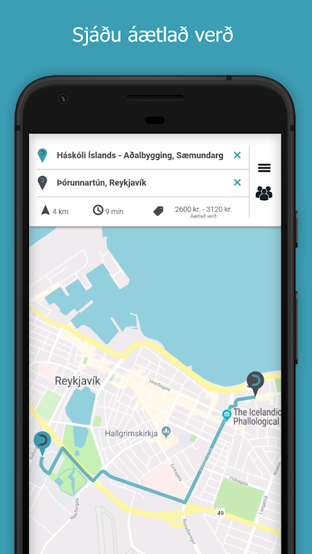 This is the only taxi app in Iceland where you can book the next available taxi driver no matter what taxi stations he may drive for.
