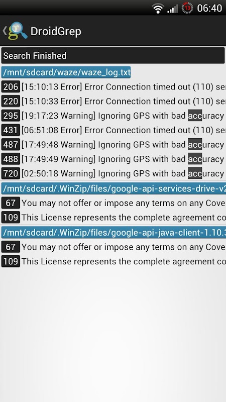 Search your text files easily with DroidGrep, a grep like app for Android. With DroidGrep you can: