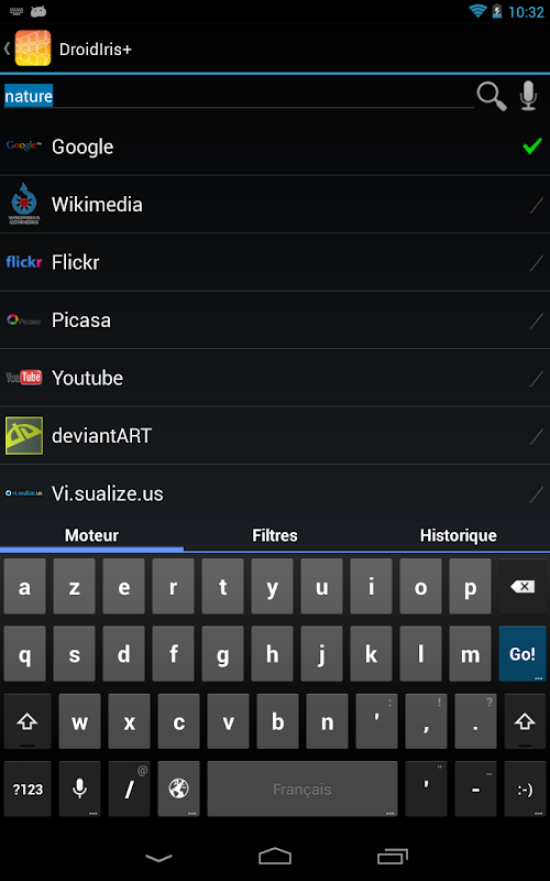 Information importante : depuis le 1er août le moteur Bing n'est plus supporté, la raison étant que l'API n'est plus gratuite pour les développeurs, et souhaitant maintenir la fonction de recherche Gratuite et sans pub, il m'est obligé de le supprimer de cette version. Merci de votre compréhension.