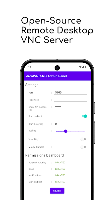 - Démarrage au démarrage : démarrez automatiquement le service VNC au démarrage de votre appareil.