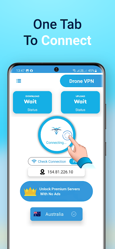 • Facile à utiliser : Drone VPN est facile à utiliser. Téléchargez et installez simplement l'application et connectez-vous à un serveur VPN en un seul clic.