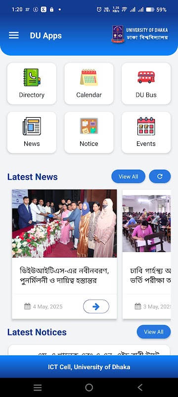 DU apps est une initiative prise par DU ICT (Information and Communication Technology) Cell pour fournir des services via l'application mobile. Les versions Android et iOS sont disponibles dès maintenant.