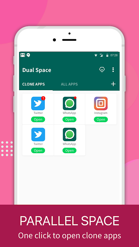 • Facile à cloner WhatsApp et plus d'applications sociales dans Clone Space.