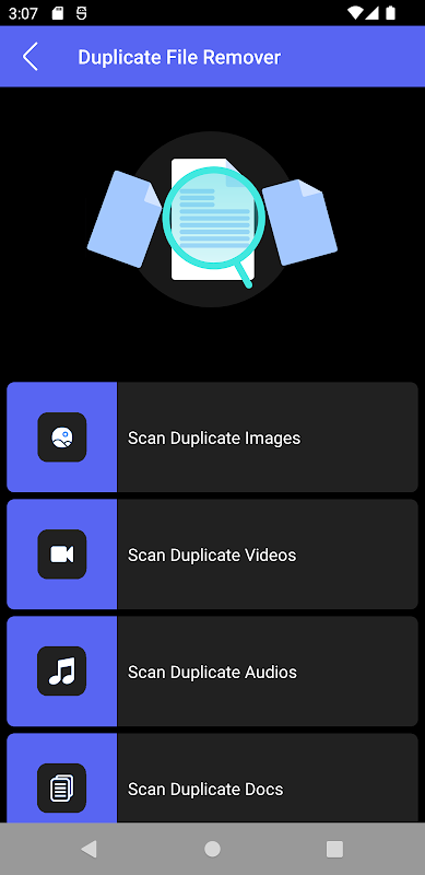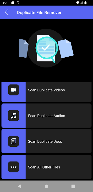 Trouvez des photos, des vidéos, des fichiers audio, des documents et tous les fichiers en double dans la mémoire du téléphone.
