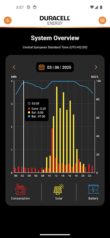 Visualisez la consommation de votre foyer et l'énergie qui circule dans vos appareils connectés Duracell, ce qui vous donne une compréhension claire de la production solaire, de l'utilisation de la batterie et de l'utilisation de l'énergie du réseau.