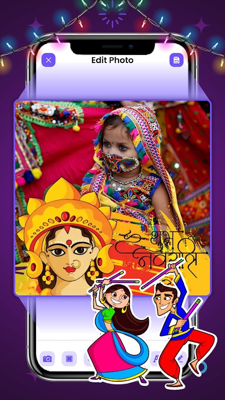 📱💽📷🎞️📹🎥🏜️🏙️📲🌁 Add a text to your photo, and decorate the Navratri Frame with some amazing stickers.
