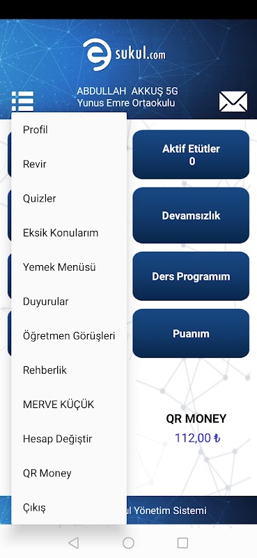 système de gestion scolaire. Tous les modules de gestion dont vous avez besoin sont e-sukul.com, démarches administratives, syllabus, e bibliothèque, e cantine et système de shopping sécurisé étudiant. Les opérations administratives peuvent être effectuées rapidement et facilement avec le module d'examen de bourses d'études, le module d'examens pratiques, les transactions par SMS, la gestion des services et le module de préparation du programme. Suivi académique avec devoirs, études et transactions en tête-à-tête. Vous pouvez faire toute la gestion comptable telle que la gestion comptable, recevoir des acomptes en ligne ou en espèces, bilan, revenus et dépenses, transactions salariales et e-facture. Module PDR unique avec scl90, test d'attention de bourdon plus 54 tests que vous pouvez appliquer à tous vos élèves. Avec le module d'examen en ligne, vous pouvez gérer l'ensemble du processus d'examen sans utiliser de papier. De cette façon, vous économisez 1 arbre par élève et par an. Avec le module de professeur d'intelligence artificielle, qui est le premier en Turquie, les lacunes d'acquisition des élèves sont déterminées par le système, des cours et des quiz automatiques sont appliqués et la déficience d'acquisition est complétée.