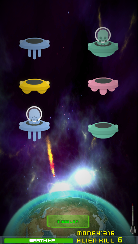 when you destroy aliens collect money and upgrade earth for shield and nuclear missiler.