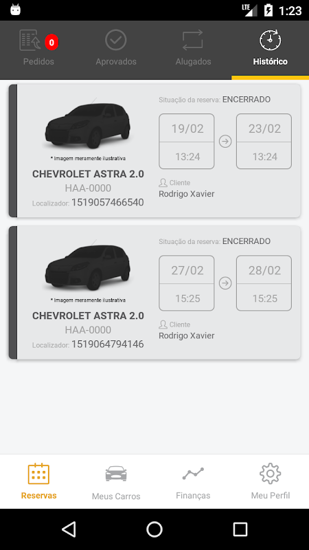 O locatário do veículo entra em nossa plataforma, faz a pesquisa desejada, visualiza os dados do veículo e inicia a locação.